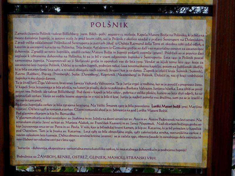 Desetega novembra 2013 smo se z avtobusom popeljali proti Litiji, mimo Šmartnega pri Litiji na POLŠNIK, kjer je daroval sv. mašo g. Štefan Babič v polšniški cerkvi, ki je posvečena Lurški materi božji. V bližnji gostilni smo se okrepčali. Pot smo nadaljevali v vas Velika Preska. V tej vasi zelo uspešno vodi mizarstvo g. Jože Kos. Popeljal nas je v svoj razstavni prostor in nam predstavil uspešno vodenje mizarstva in razvoj turistične dejavnosti v "Srcu Slovenije."