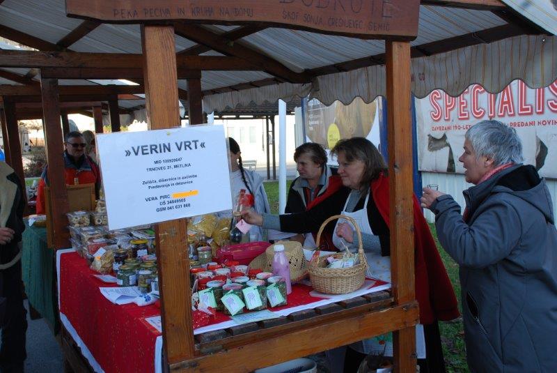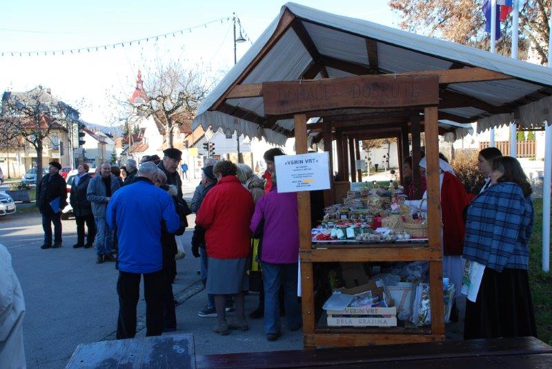 Običajnim stojnicam so se pridružile tudi stojnice: TURISTIČNEGA DRUŠTVA DOBENO in stojnica VERE PIRC - VERIN VRT, ki je s seboj pripeljala prijateljici, ki sta bili oblečeni v belokrnjski narodni noši in sta med obiskovalci delile BELOKRANJSKO POGAČO.