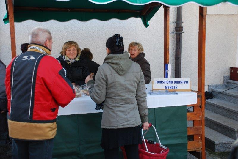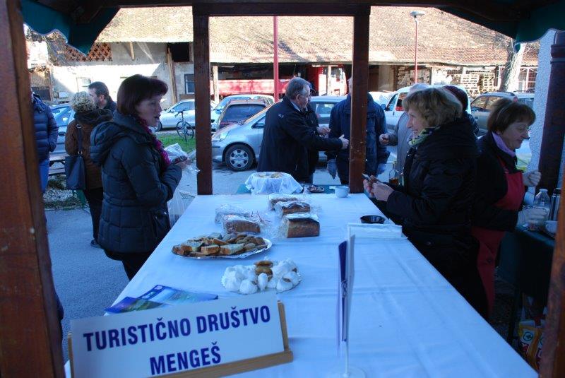 Pod okriljem Občine Mengeš je TURISTIČNO DRUŠTVO MENGEŠ, v soboto, 20. dec. 2014 popestrilo tržno dopoldne. Na stojnici Turističnega društva Mengeš so brezplačno delili: narezane kuhane klobase s hrenom in kuhano vino. Možno je bilo dobiti tudi pecivo in potico.
