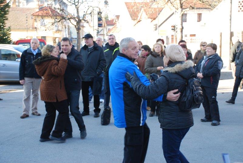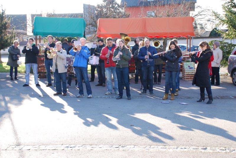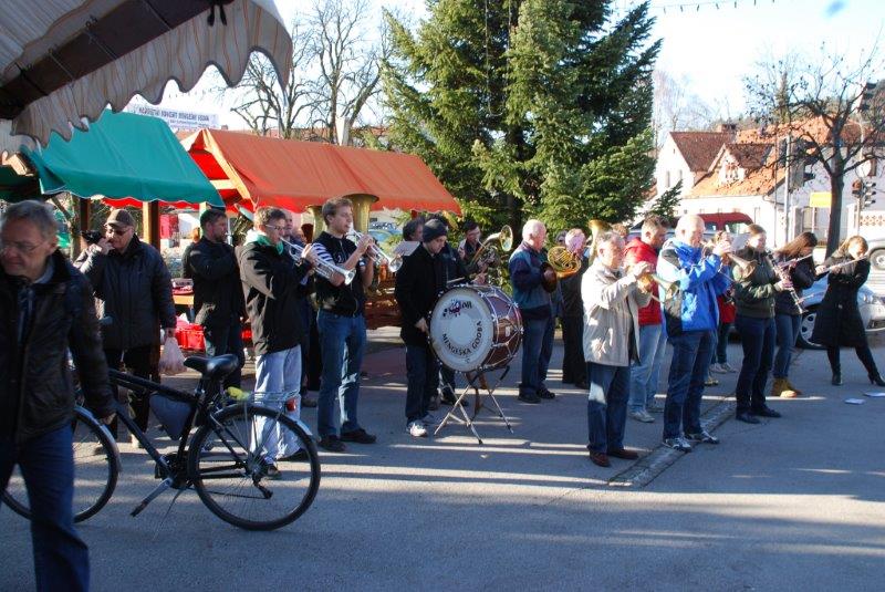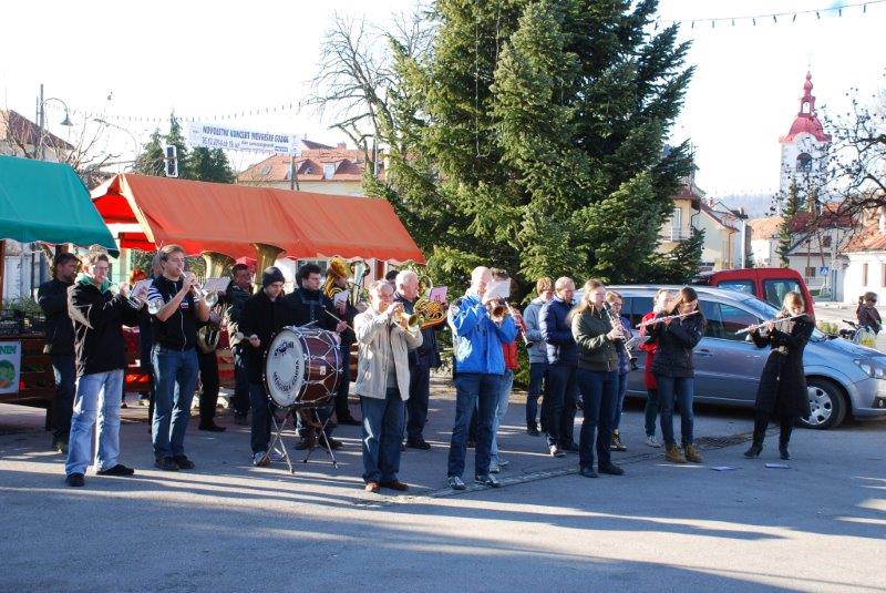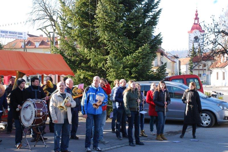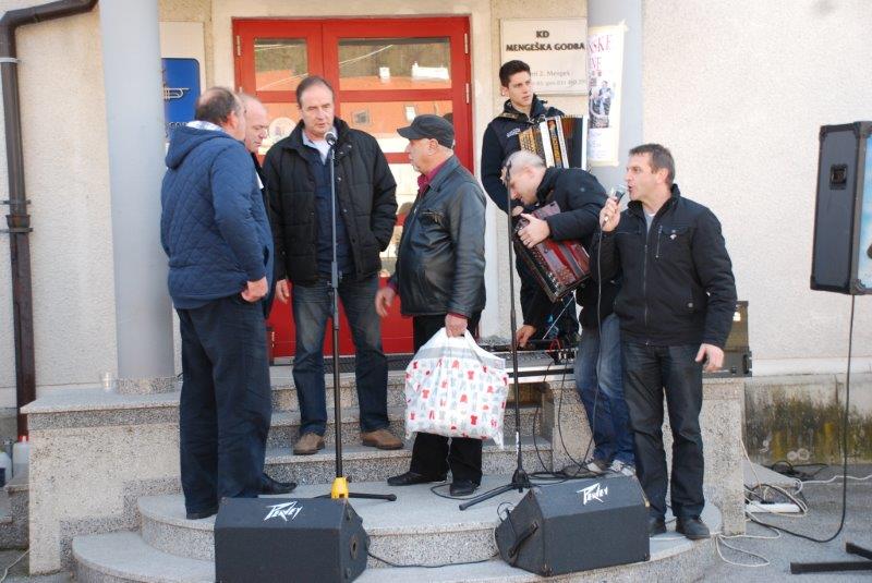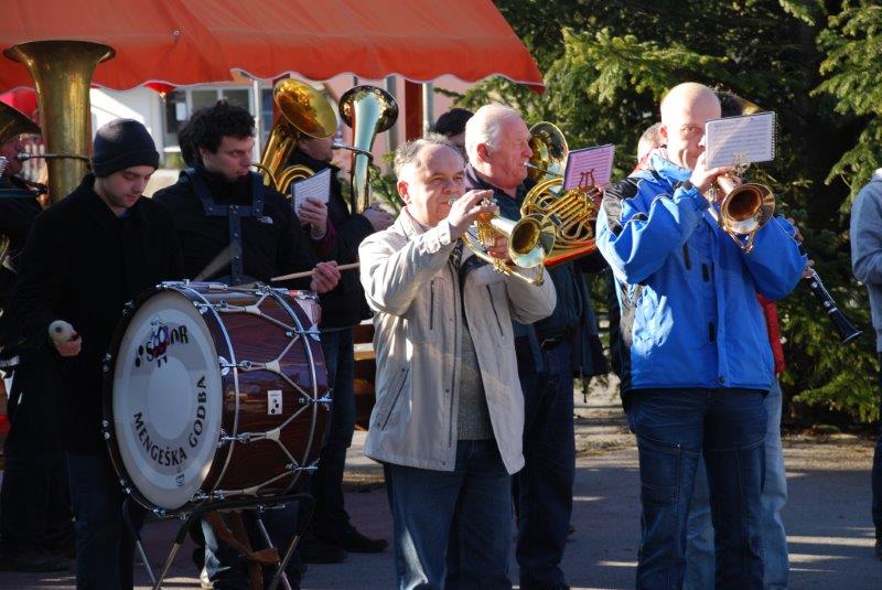 - Ves ta čas pa je v godbenem domu vadila MENGEŠKA GODBA za bližajoči BOŽIČNO-NOVOLETNI koncert. Po končani vaji so se z inštrumenti pojavili na ploščadi in zaigrali so nam nekaj poskočnih. Med njimi tudi tisto V MENGŠU SO VESEL LJUDJE.