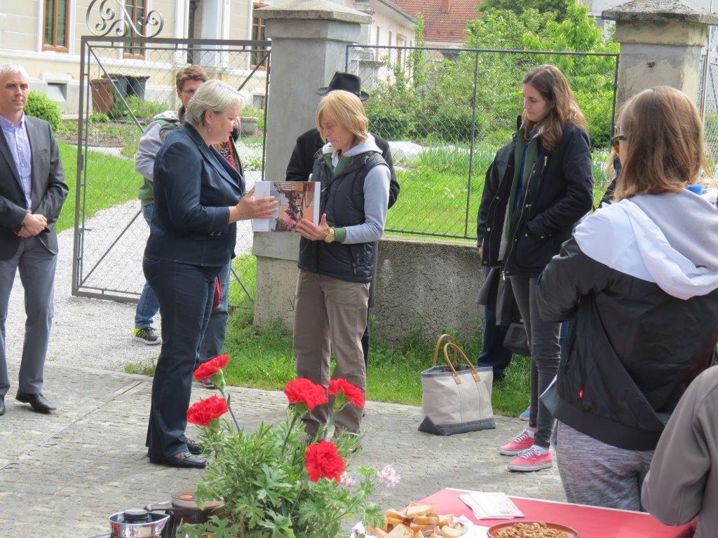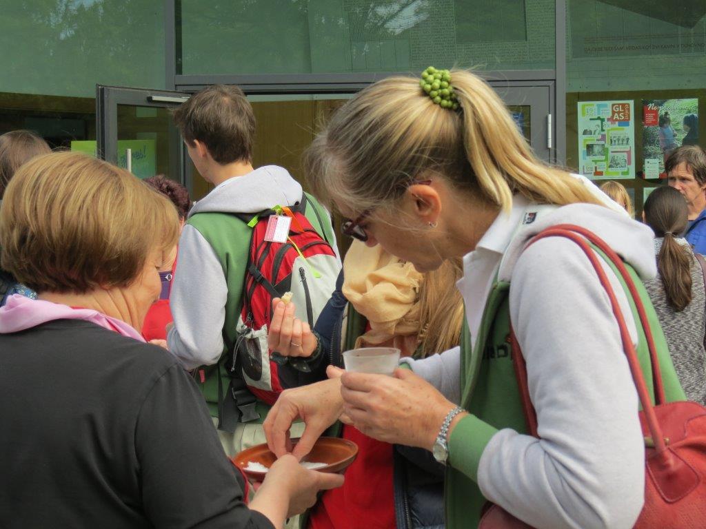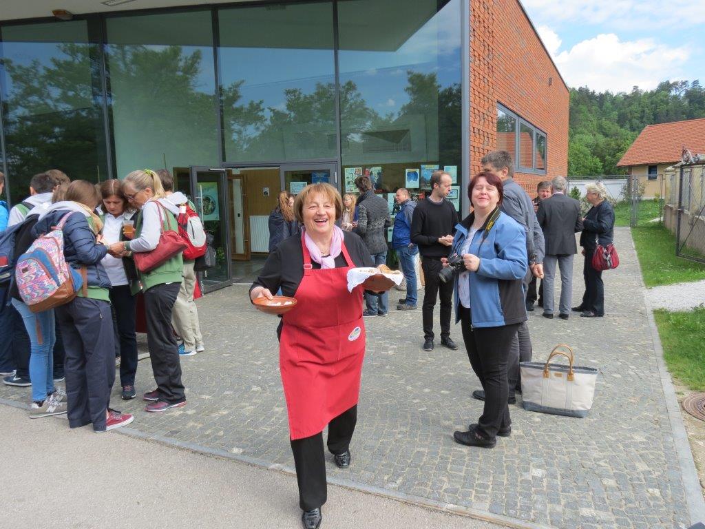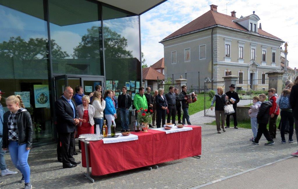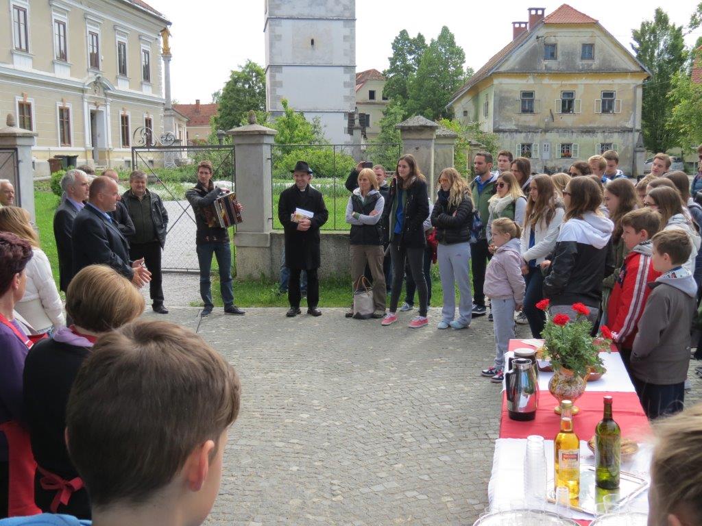 Čanice Turističnega društva Mengeš, pod vodstvom predsednice Zorke Požar, so jim pripravile tradicionalni slovenski prigrizek: kruh in sol, orehova jedrca, piškote in šilce žganja ali medice, za napitek mlajših gostov pa čaj. Vsakemu so izročile tudi ovojnico s prospekti iz Mengša.