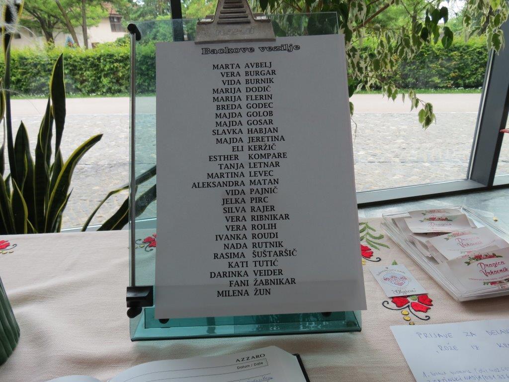 Pridne roke 27 Backovih vezilj ustvarja že peto leto pod vodstvom Vide Burnik , prikazale so ročna dela: prte, zavese, rože, vezenje, rešilje, kvačkanje, krašenje, ki so jih razstavile po mizah in ki so nas popeljali v čas naših babic, ki so vsa ta znanja obvladale. Danes te pridne roke skrbijo, da tako delo ne pade v pozabo.