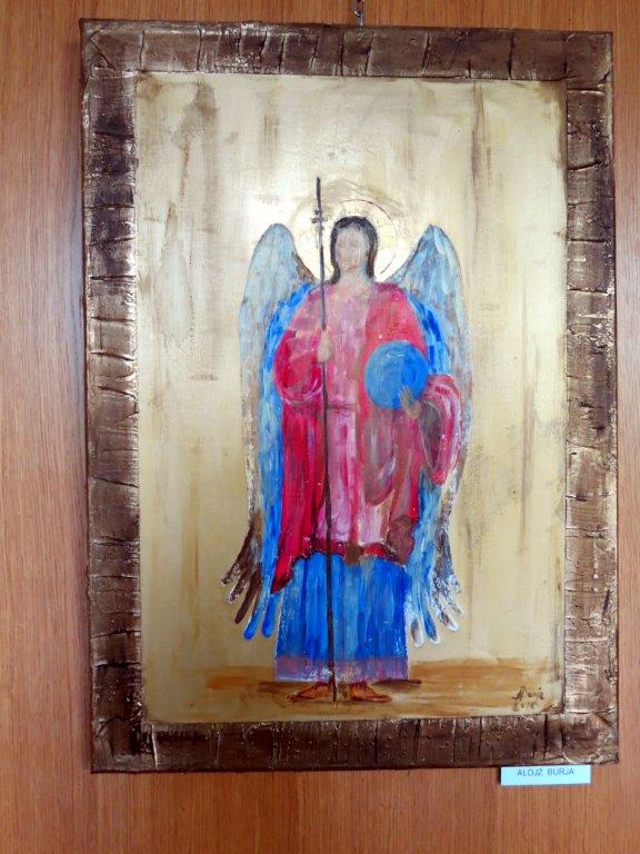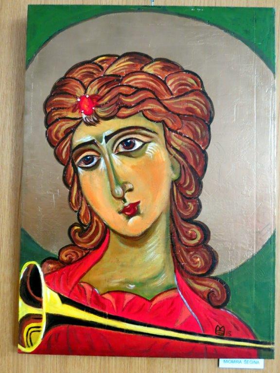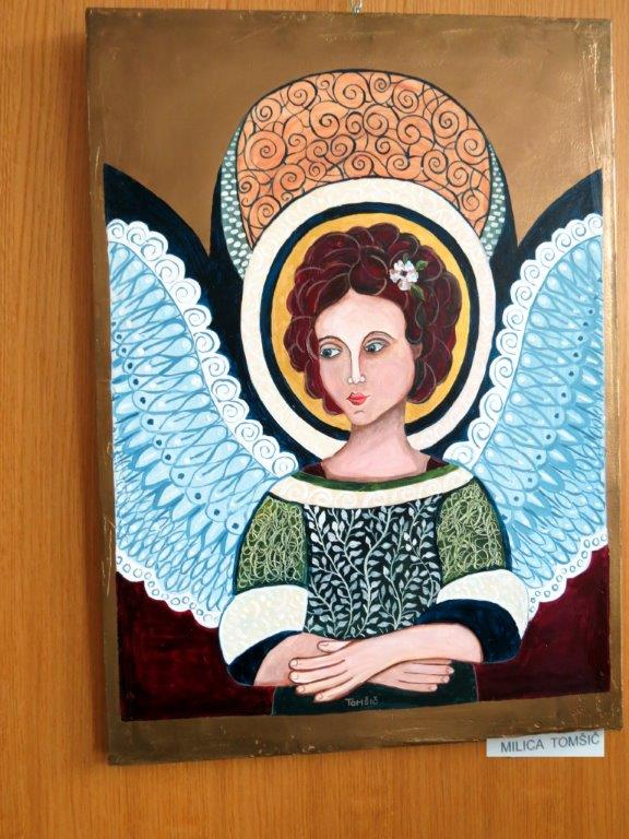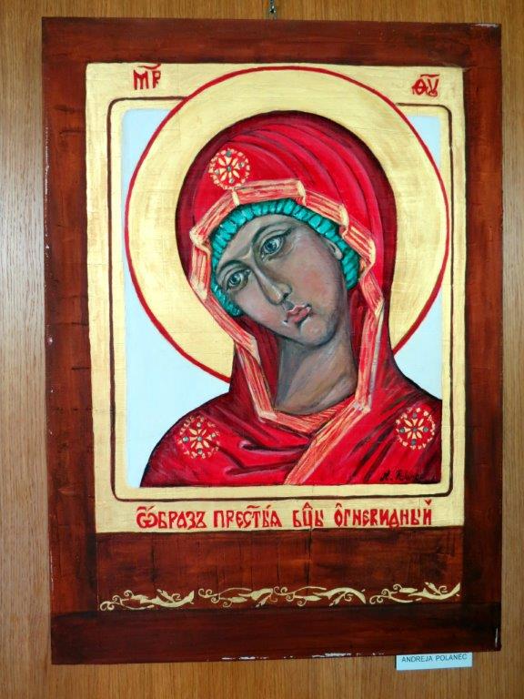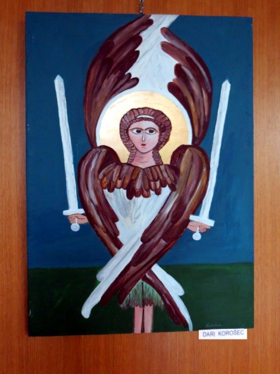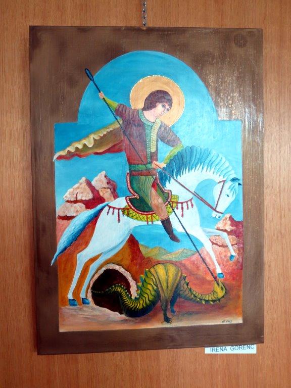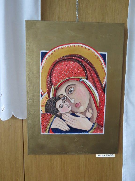 Na stene župnijskega doma je Likovno društvo Mengeš obesilo kar 20 svojih ikon, ki jih je pred časom že razstavljalo v preddverju kulturnega doma. Dvorana je bila polna obiskovalcev, zablestela je z vsemi umetninami tako na mizah, kot na steni in privabljala poglede .