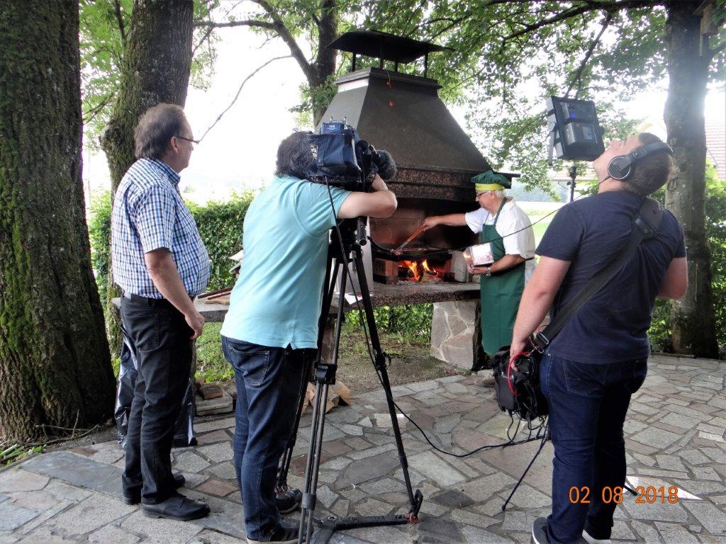 Organizacija je hitro stekla s tem, da smo si pridobili odlične izdelke podjetja »Meso Kamnik« in seveda tudi opravo za našega žar mojstra Marjana Urbanijo. Seveda pa brez dobrega domačega kruha, ki ga je spekla predsednica Zorka ni šlo, kot tudi odličnega štrudla in dobrot iz naših vrtov od bučk do paradižnika. Marjan nam je pokazal tudi pripravo »Antonove kranjske klobase« na žaru, ki je res odlična. Žal vsega ne bo videti na televiziji, pa vendar so bili člani avstrijske ekipe ( snemalec in ozvočevalec sta Avstrijska Slovenca in nam vsem dobro znani organizator Beljaškega sejma Gerhard Liepuscich) navdušeni nad našim pristopom, tako, da je še daleč v noč potekal z njimi razgovor in morda tudi možnost kakšne predstavitve v prihodnosti.