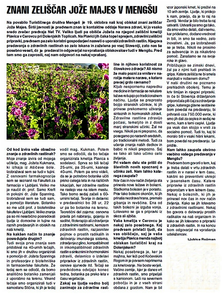 Preberite tudi intervju z g. Majesem, ki ga je napravila gospa Ljubica Rožman in je bil objavljen v oktoberski številki javnega glasila Občine Mengeš - MENGŠAN