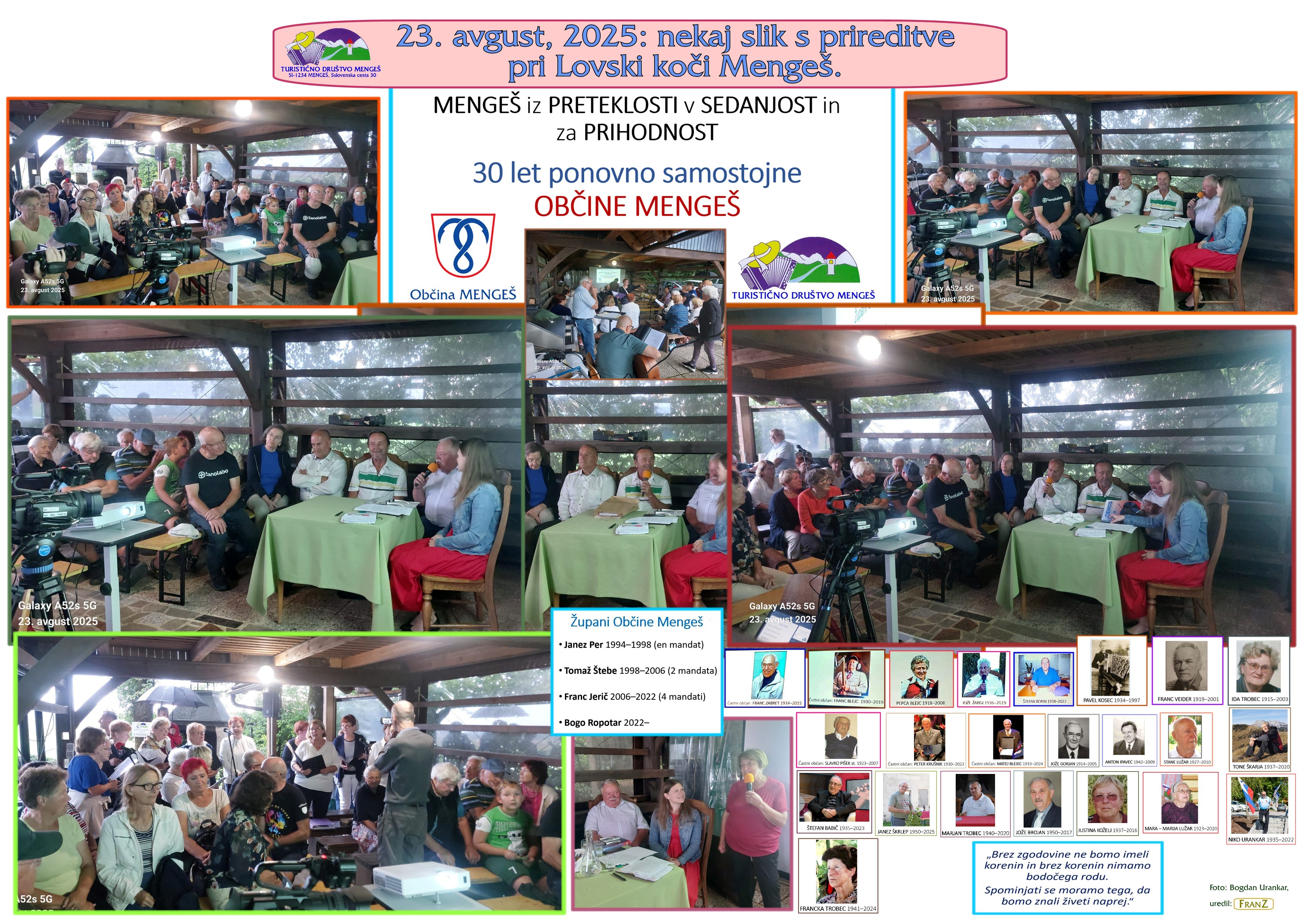V soboto 23. avgusta je Turistično društvo Mengeš pripravilo vsakoletno pogovorno prireditev »Mengeš iz preteklosti za sedanjost in prihodnost« pri Lovski koči v Mengšu.