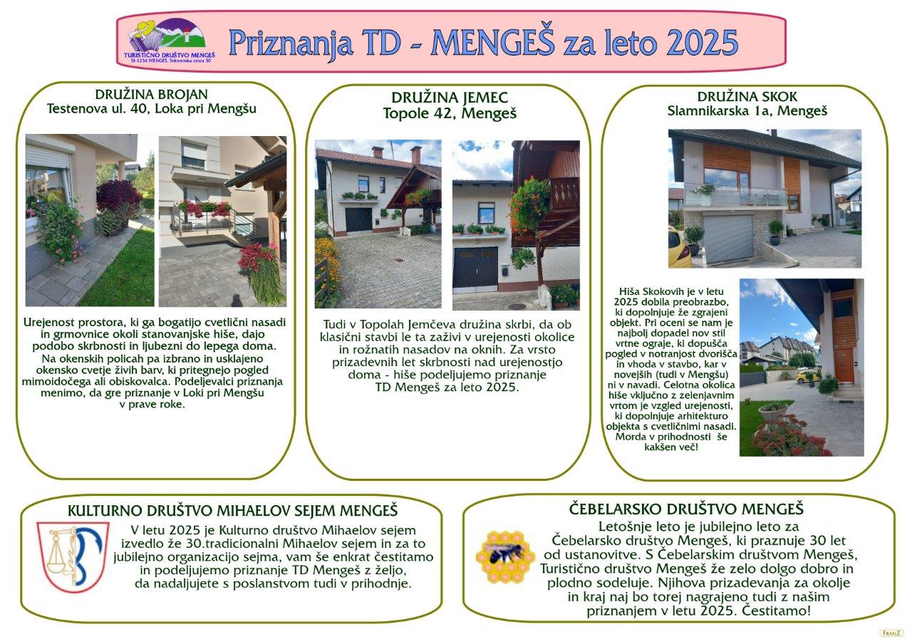 doma – hiše podeljujemo priznanje TD Mengeš za leto 2025.