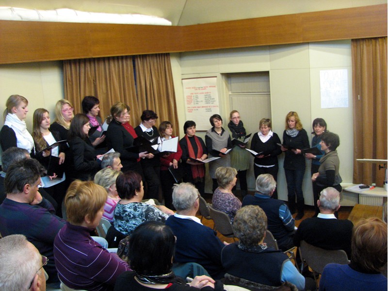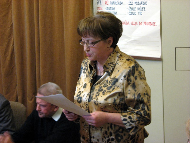 Predsednica društva ga. Zorka Požar je najprej pozdravila vse navzoče ter predlagala, da nam ućiteljski pevski zbor, ki se nam je pridružil, zapoje nekaj pesmi. Po tej točki, ki je bila nagrajena z aplavzom, je predlagala naslednji dnevni red: