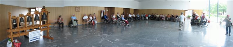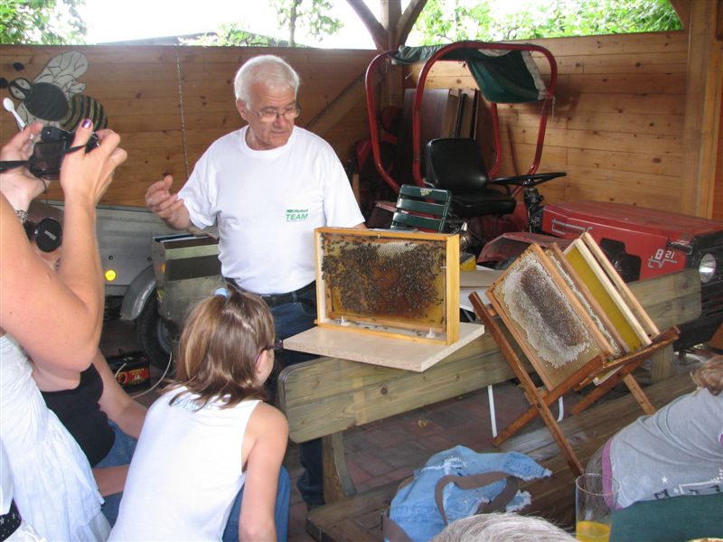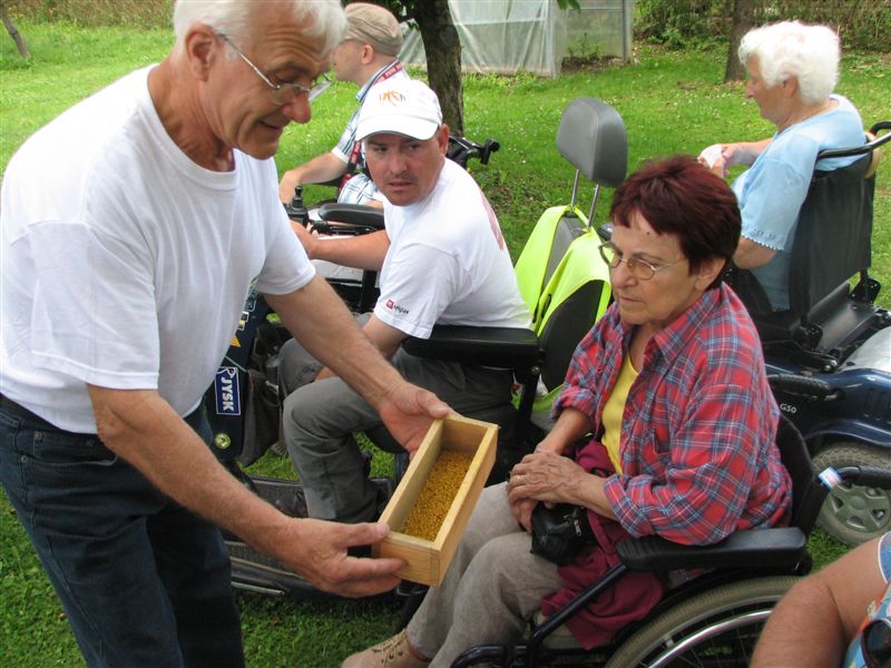 Čas je prehitro mineval, zato so se gostje razdelili v dve skupini. Eni so si ogledali farno cerkev - posnetke si oglejte spodaj v galeriji slik, drugiso odšli na ogled ČEBELARSTVA PAVRIČ. Ob 13. uri so se zopet vsi skupaj zbrali na ploščadi za Kulturnim domom v Mengšu kjer se se pričel družabni del piknika. Za veselo razpoloženje jim je igral g. Franci Veider.