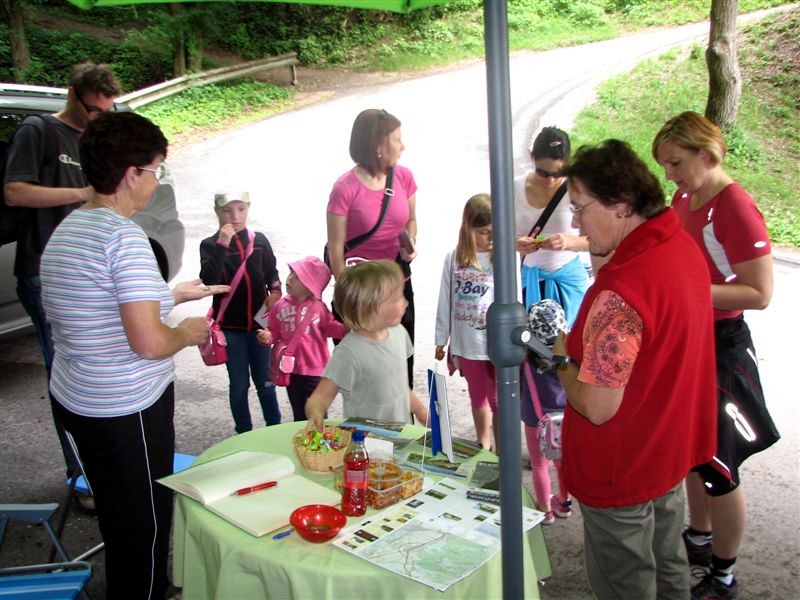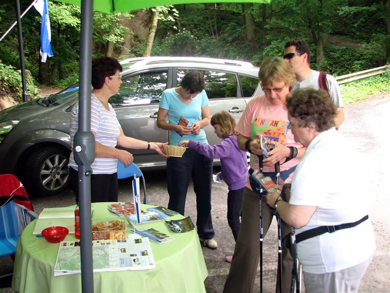 Ob zaključku pohoda smo vsakemu udeležencu izročili spominsko značko. Vsi so se pri nas lahko tudi odžejali z brezalkoholnimi pijačami in posladkali z bomboni in drobnim pecivom. Razdelili smo tudi prospekte, razglednice, zemljevide, ki jih je izdalo naše društvo in še nekaj gradiva »Srca Slovenije«. Prospekte imamo natisnjene tudi v nemškem in angleškem jeziku, da se lahko predstavimo tudi na prireditvah v tujini oz. tujcem v naši informacijski pisarni.